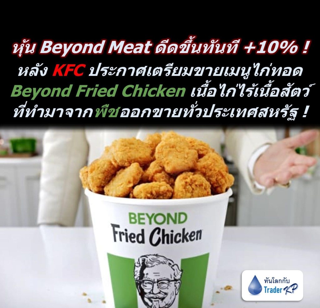การร่วมมือกับ KFC ครั้งใหญ่นี้ทำให้หุ้นบริษัท Beyond Meat บริษัท Foodtech Start up ชื่อดังของสหรัฐดีดขึ้นทันที +10% ในช่วง Pre-market จาก 61.6 เหรียญขึ้นไปที่ 67.6 เหรียญ เพราะนักลงทุนเชื่อว่าจะทำให้เกิดการยอมรับกระแสเนื้อจากพืชมากขึ้น