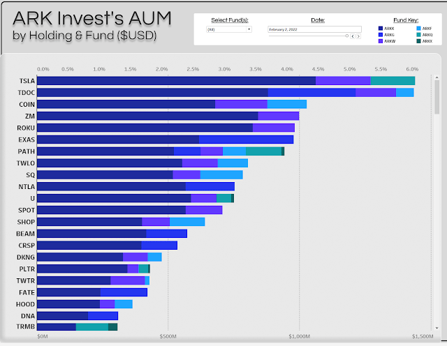 📌 เชื่อว่านักลงทุนหลายคนคงจะชินกับการที่ Tesla เป็นหุ้น Top Holding หรือหุ้นอันดับที่ 1 ของกองรวม ARK Invest