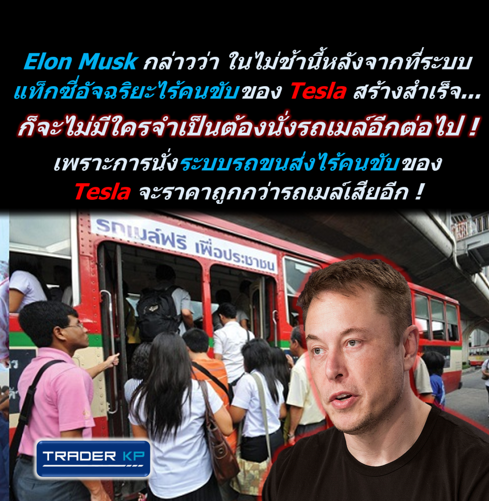 Elon Musk กล่าวว่า ในไม่ช้านี้หลังจากที่ระบบแท็กซี่อัจฉริยะไร้คนขับของ Tesla สร้างสำเร็จ ก็จะไม่มีใครจำเป็นต้องนั่งรถเมล์อีกต่อไป ! เพราะการนั่งระบบรถขนส่งไร้คนขับของ Tesla จะราคาถูกกว่ารถเมล์เสียอีก !