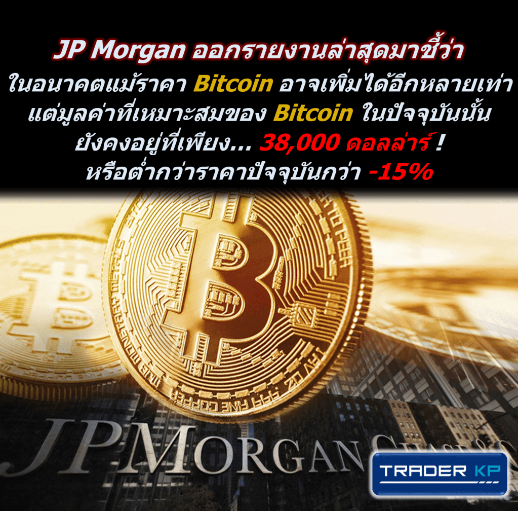 ⚠️[BREAKING]⚠️ JP Morgan ออกรายงานล่าสุดมาชี้ว่า ถึงแม้ราคา Bitcoin อาจเพิ่มขึ้นได้อีกหลายเท่าในอนาคต แต่มูลค่าที่เหมาะสมของ Bitcoin ในปัจจุบันนั้นยังคงอยู่ที่เพียง 38,000 ดอลล่าร์ ! หรือต่ำกว่าราคาปัจจุบันกว่า -15% !