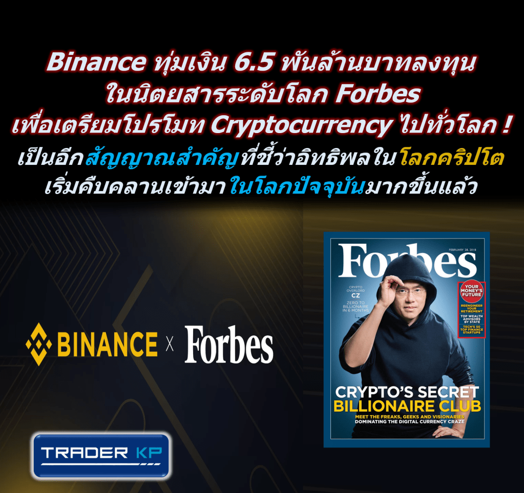 Binance ทุ่มเงิน 6.5 พันล้านบาทลงทุนในนิตยสารระดับโลก Forbes เพื่อขึ้นเป็นผู้ถือหุ้นใหญ่และเตรียมโปรโมท Cryptocurrency ไปทั่วโลก ! เป็นอีกสัญญาณสำคัญที่ชี้ว่าอิทธิพลในโลกคริปโตเริ่มคืบคลานเข้ามาในโลกปัจจุบันมากขึ้นแล้ว