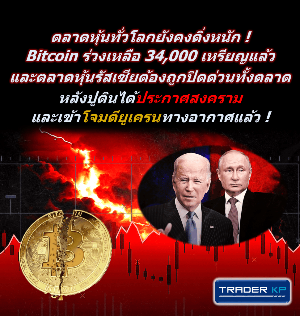 ⚠️[BREAKING]⚠️ ตลาดหุ้นทั่วโลกยังคงดิ่งหนัก ! Bitcoin ร่วงเหลือ 34,000 เหรียญแล้ว และตลาดหุ้นรัสเซียต้องถูกปิดด่วนทั้งตลาด หลังปูตินได้ประกาศสงครามและเข้าโจมตียูเครนทางอากาศแล้ว !