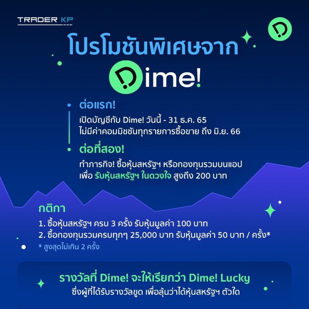เปิดบัญชีกับ Dime! วันนี้ – 31 ธันวาคม 65 ไม่มีค่าคอมมิชชันทุกรายการซื้อขายถึง 30 มิถุนายน 66