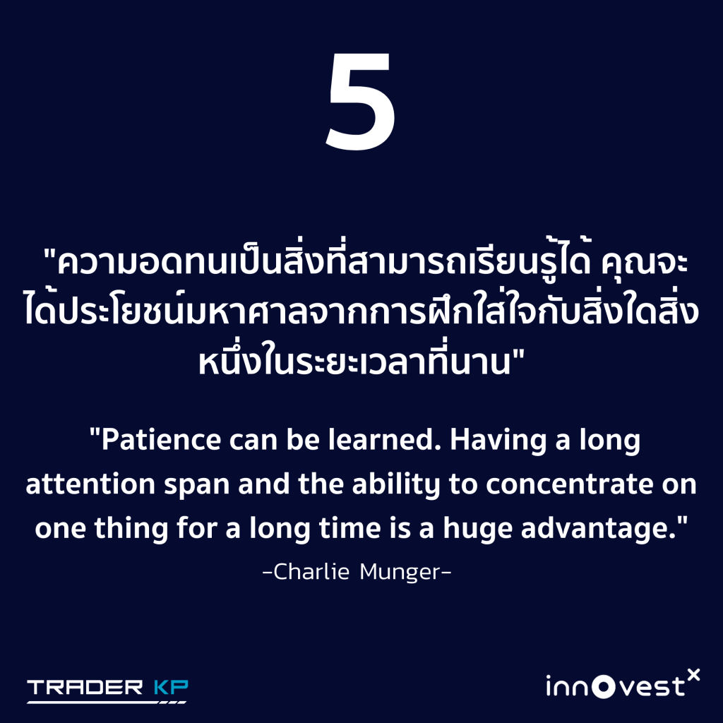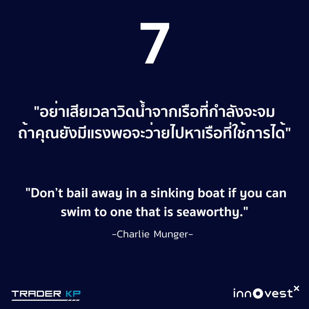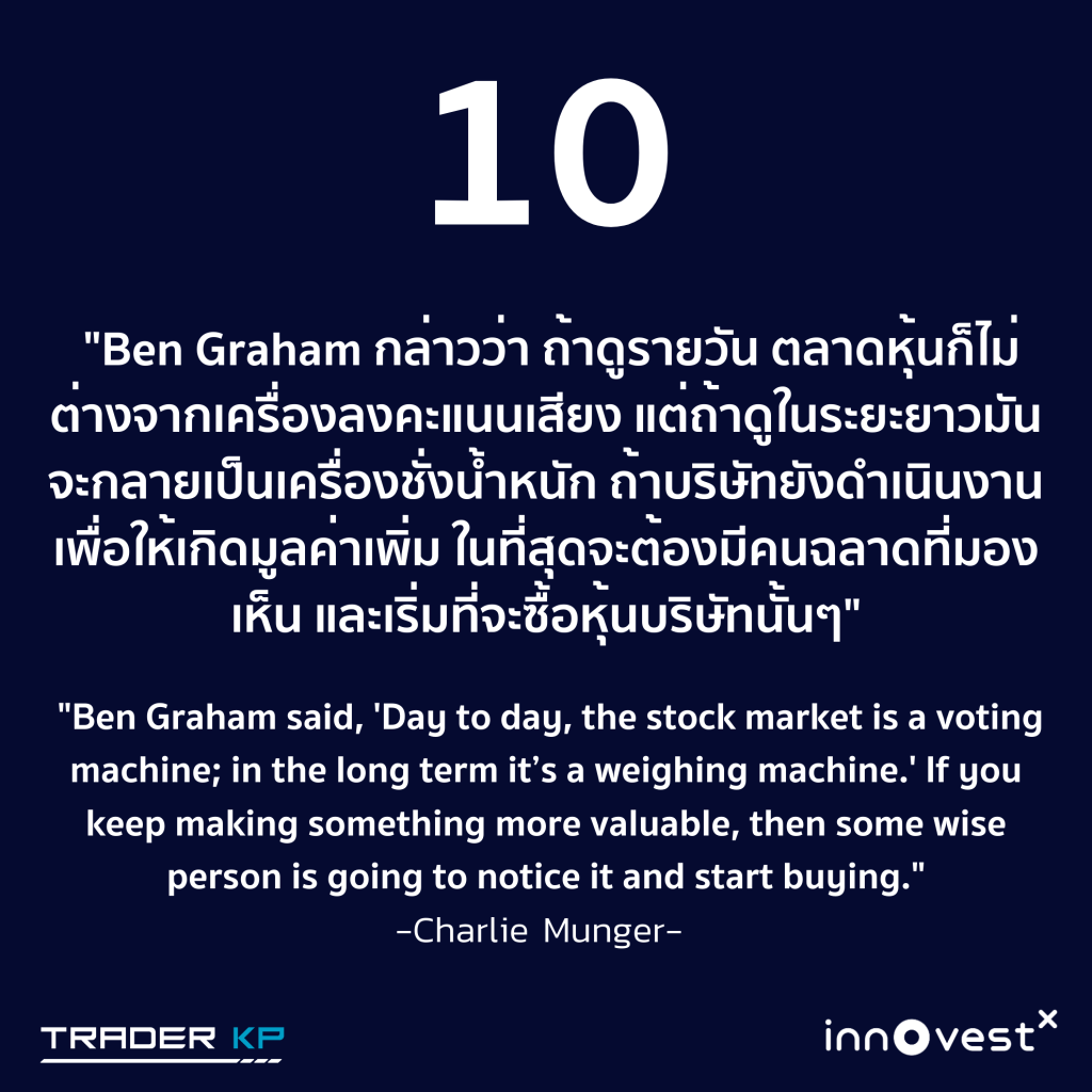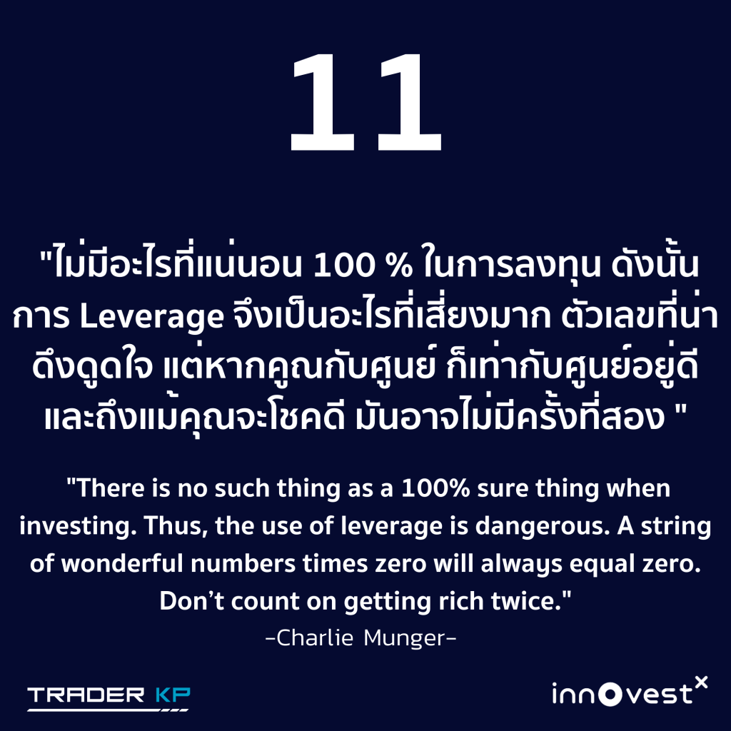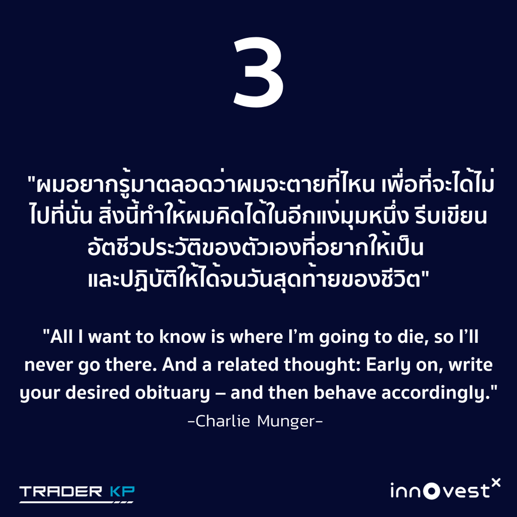 📌 วันนี้ Trader KP เลยอยากจะมาแชร์ส่วนหนึ่งของจดหมาย ที่ปู่ Warren ได้พูดถึงพาร์ทเนอร์คนสำคัญของเขา นั่นก็คือ Charlie Munger โดยปู่ Warren ได้บอกว่า ไม่มีอะไรที่จะดีไปกว่าการมีพาร์ทเนอร์ที่ดี – Nothing Beats Having a Great Partner และถึงแม้ Charlie จะมีความคิดที่ตรงกับ Warren เสมอ แต่ Charlie มักจะสรุปข้อคิดได้สั้นและลึกซึ้งมากกว่า ไม่มีสักครั้งที่เขาโทรหา Charlie แล้วจะไม่ได้ข้อคิดดีๆกลับมา ปู่เลยอยากเอามาแชร์ให้นักลงทุนได้ฟัง มีทั้งหมด 15 ข้อครับ