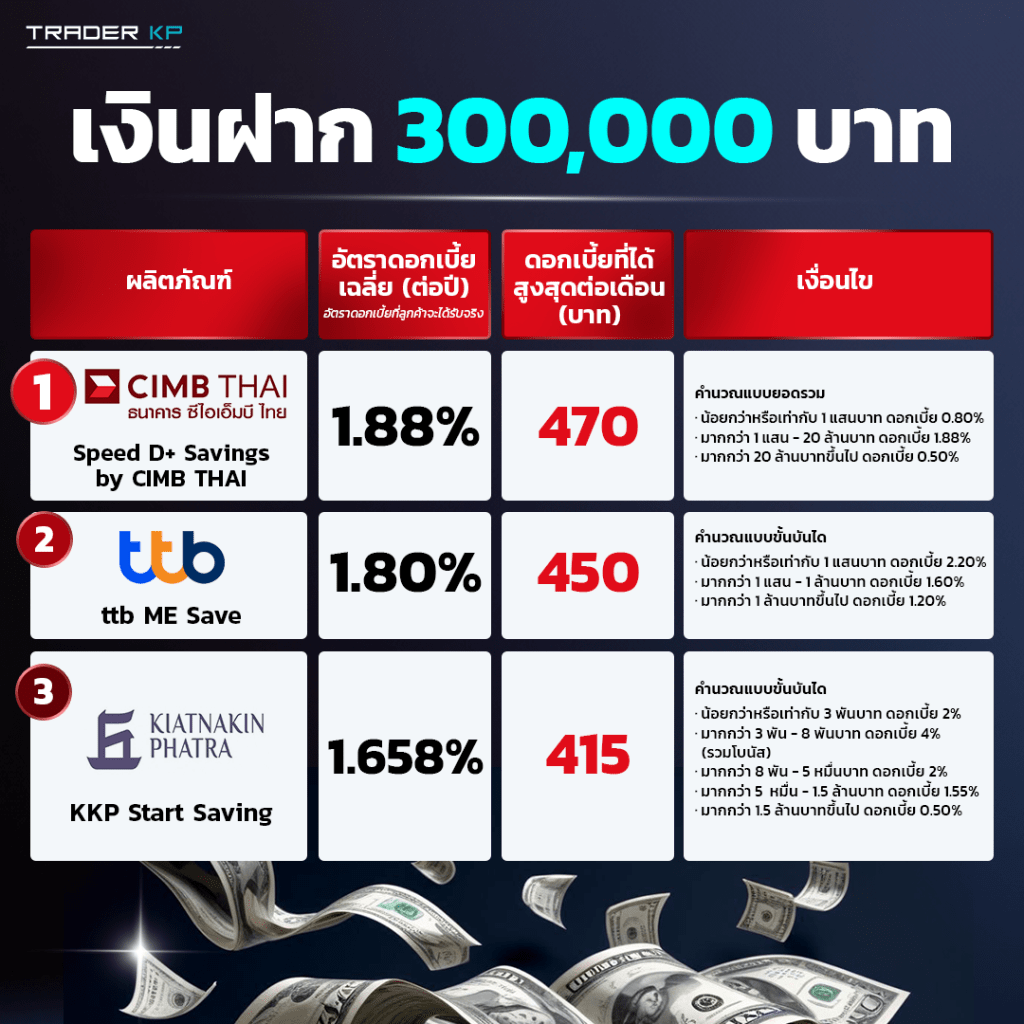 1️⃣ ยอดเงินฝาก 300,000 บาท