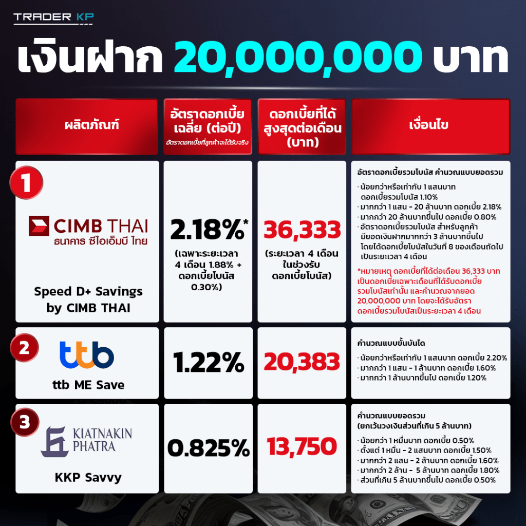 3️⃣ ยอดเงินฝาก 20,000,000 บาท