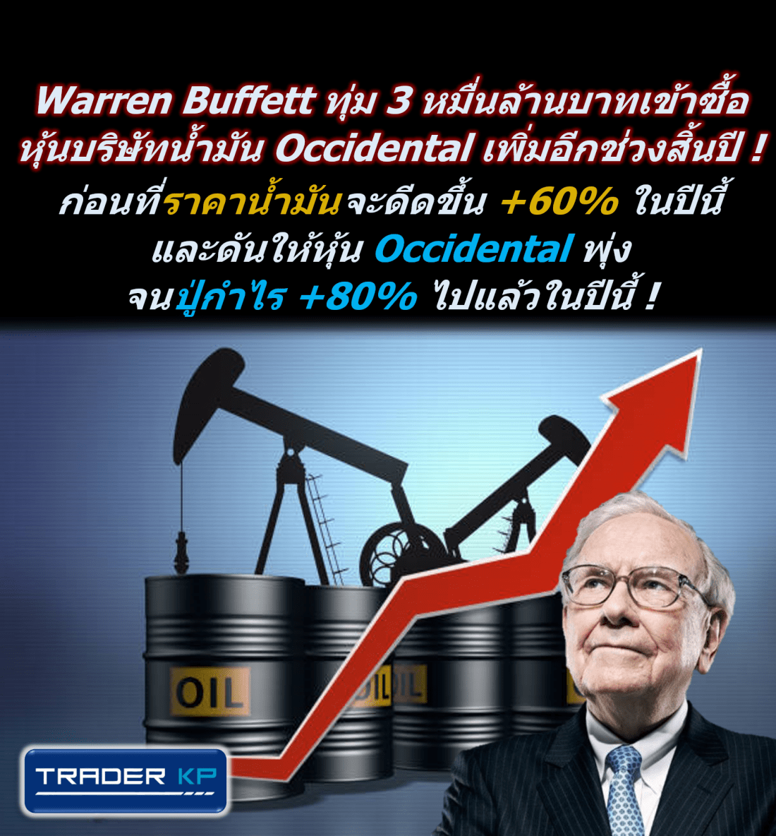 ปู่ Warren Buffett ทุ่ม 3 หมื่นล้านบาทเข้าซื้อหุ้นบริษัทน้ำมัน Occidental เพิ่มอีกช่วงสิ้นปี ! ก่อนที่ราคาน้ำมันจะดีดขึ้น +60% ในปีนี้ และดันให้หุ้น Occidental พุ่งจนปู่กำไร +80% ไปแล้วในปีนี้ !