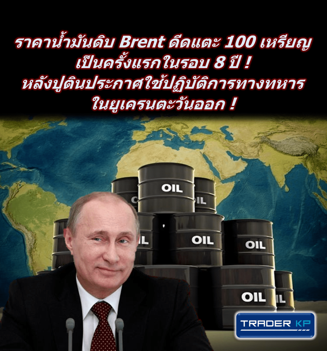 ราคาน้ำมันดิบ Brent ดีดแตะ 100 เหรียญต่อบาร์เรล เป็นครั้งแรกในรอบ 8 ปี ! หลังปูตินประกาศใช้ปฏิบัติการทางทหารในยูเครนตะวันออก !