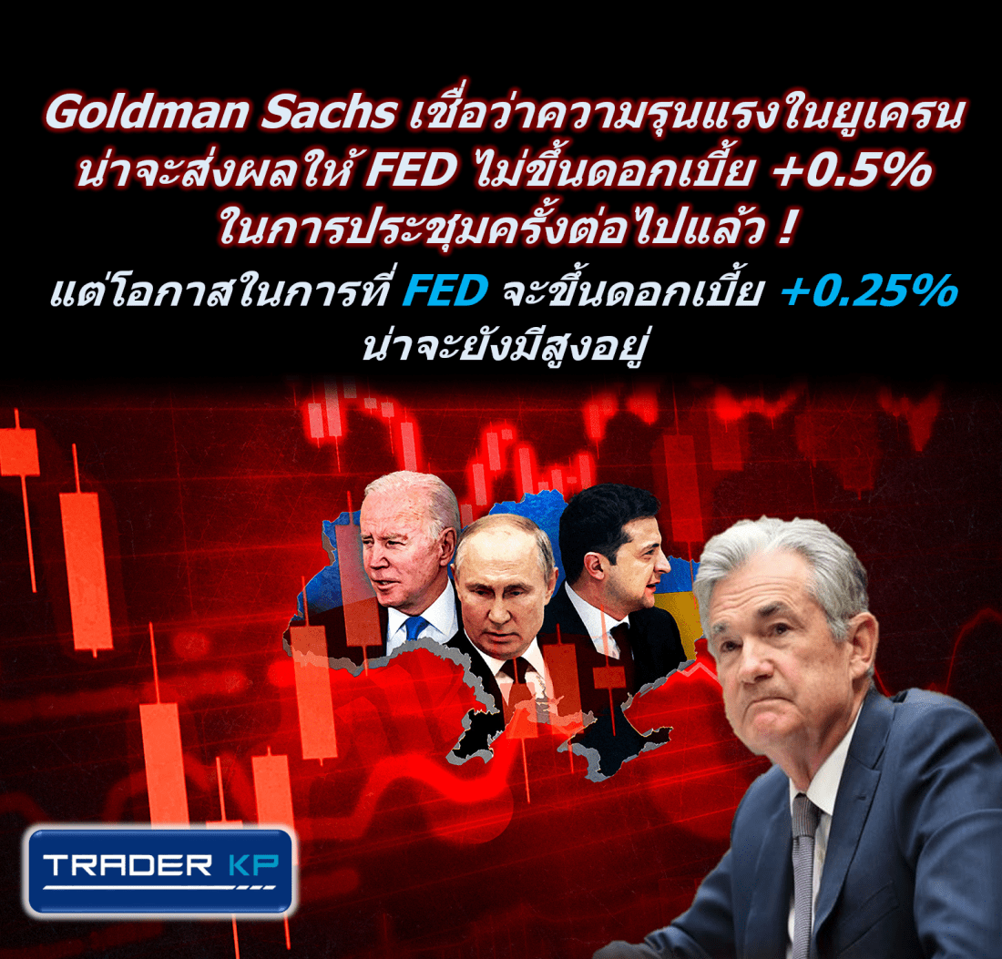 Goldman Sachs เชื่อว่าความรุนแรงในยูเครนน่าจะส่งผลให้ FED ไม่ขึ้นดอกเบี้ย +0.5% ในการประชุมครั้งต่อไปแล้ว !