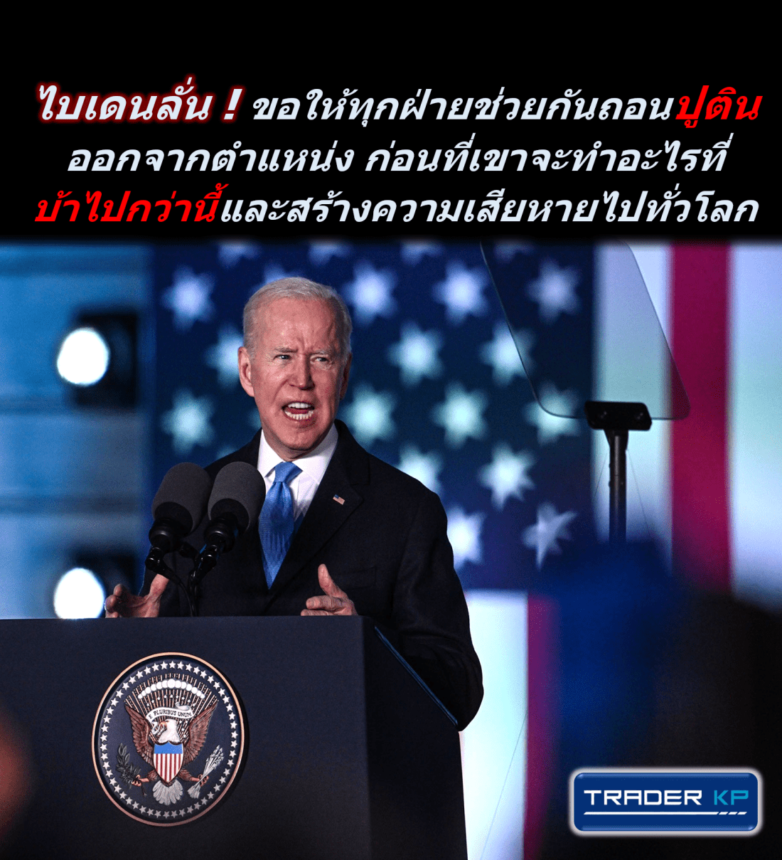 ไบเดนลั่น ! ขอร้องให้ทุกฝ่ายช่วยกันถอนปูตินออกจากตำแหน่ง ก่อนที่ปูตินคิดจะทำอะไรบ้าๆ ขึ้นมาและสร้างความเสียหายไปทั่วโลก