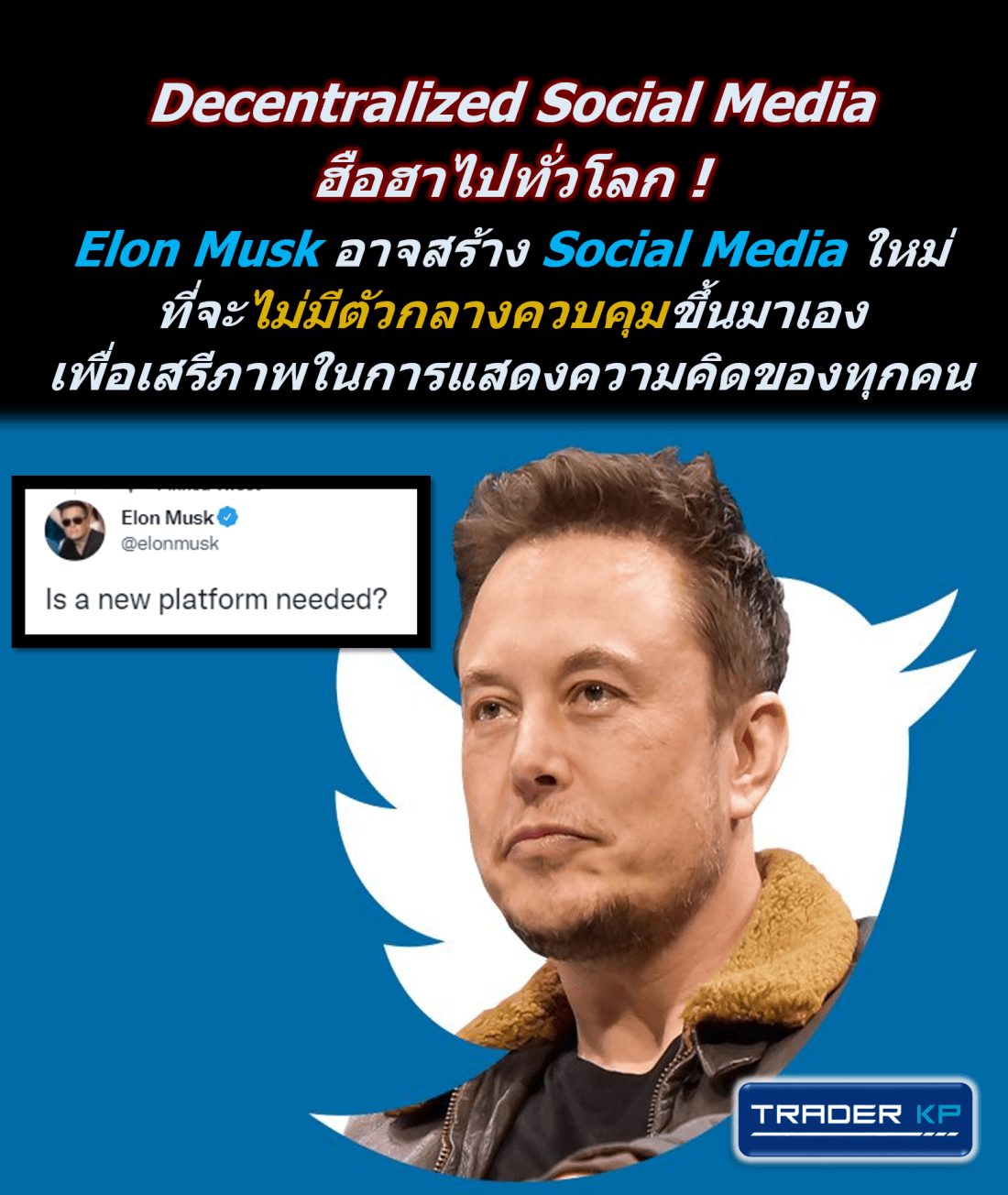 ฮือฮาไปทั่วโลก ! Elon Musk อาจสร้าง Social Media ใหม่ขึ้นมา ที่จะไม่มีตัวกลางควบคุม หรือมาปิดกั้นเสรีภาพในการแสดงความคิดของเราทุกคน !