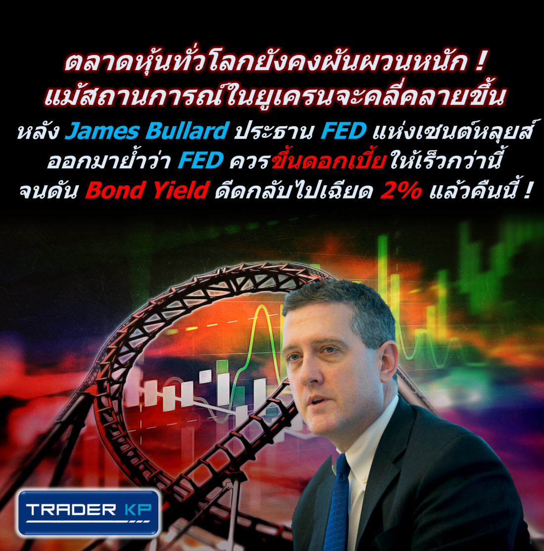 ตลาดหุ้นทั่วโลกยังคงผันผวนหนัก ! แม้สถานการณ์ในยูเครนจะ … อ่านเพิ่มเติม James Bullard ประธาน FED แห่งเซนต์หลุยส์ออกมาย้ำว่า FED ควรขึ้นดอกเบี้ยให้เร็วกว่านี้