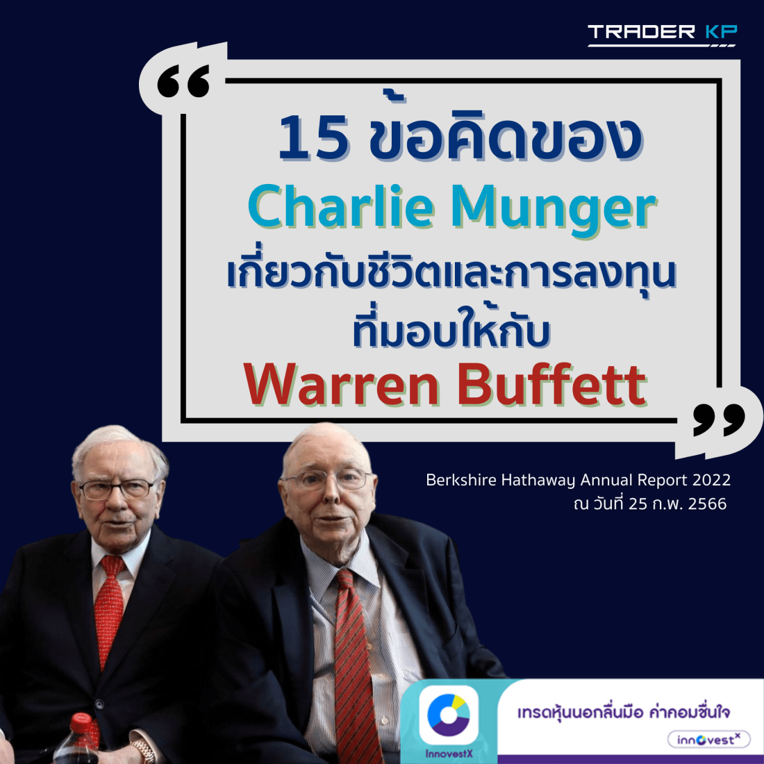 💡 15 ข้อคิดเกี่ยวกับชีวิตและการลงทุนที่ Charlie Munger มอบให้กับ Warren Buffett และถูกแชร์ในจดหมายถึงผู้ถือหุ้น Berkshire Hathaway ประจำปี 2022