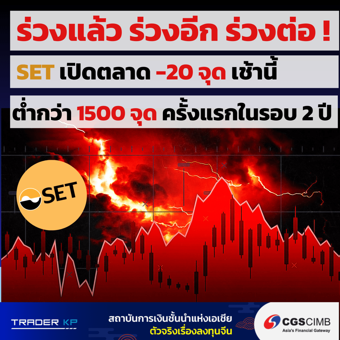 นักลงทุนทุกท่านมองว่าทำไม SET ยังโดนเทขายอย่างต่อเนื่อง … อ่านเพิ่มเติม ⚠️ ตลาดหุ้นไทยร่วงต่อ ! SET เปิดตลาด -20 จุดเช้านี้ ร่วงต่ำกว่า “1500 จุด” แล้วเป็นครั้งแรกในรอบ 2 ปี !