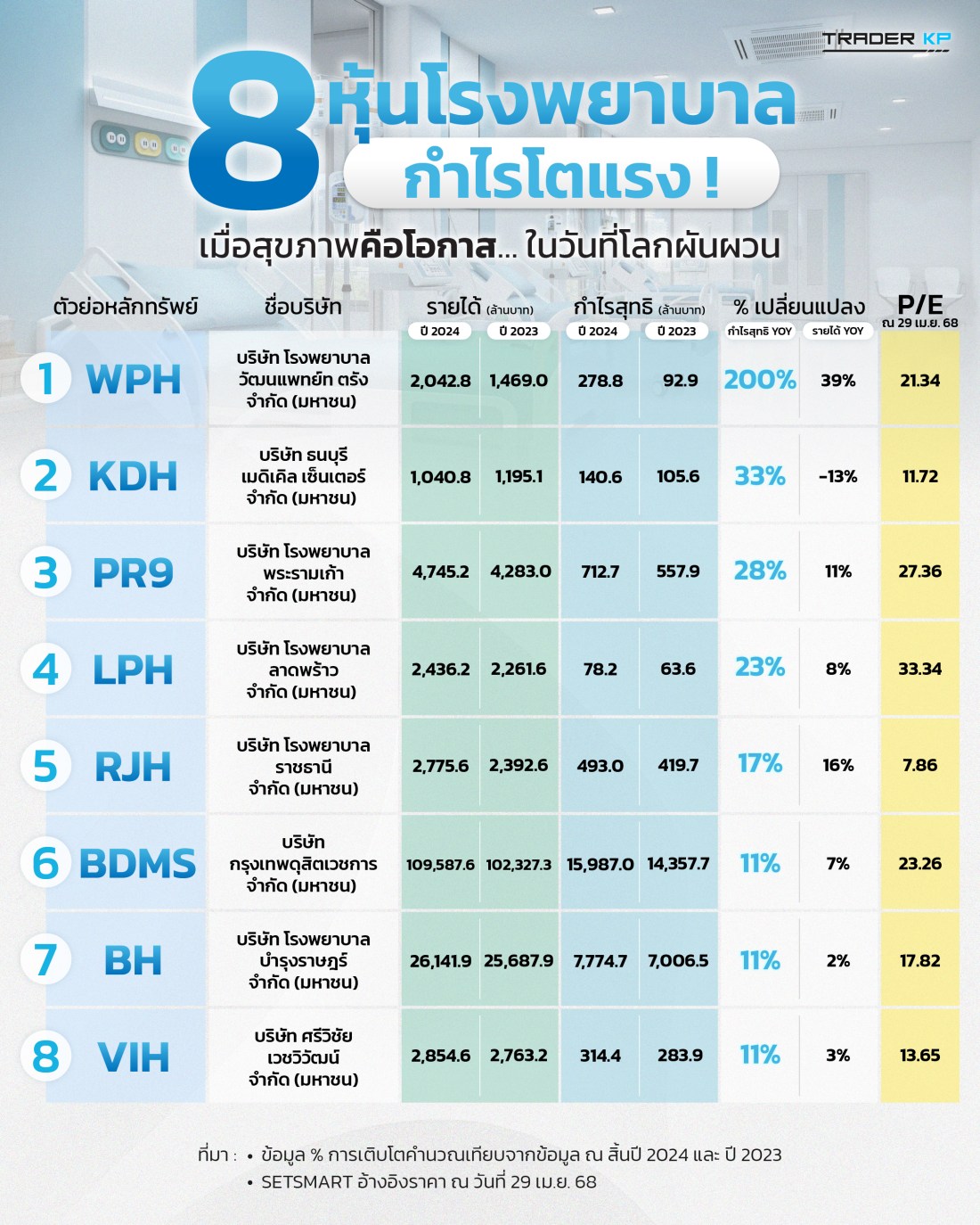เมื่อสุขภาพคือโอกาส… ในวันที่โลกผันผวน . ท่ามกลางสงคราม … อ่านเพิ่มเติม 8 หุ้นโรงพยาบาลกำไรโตแรง!